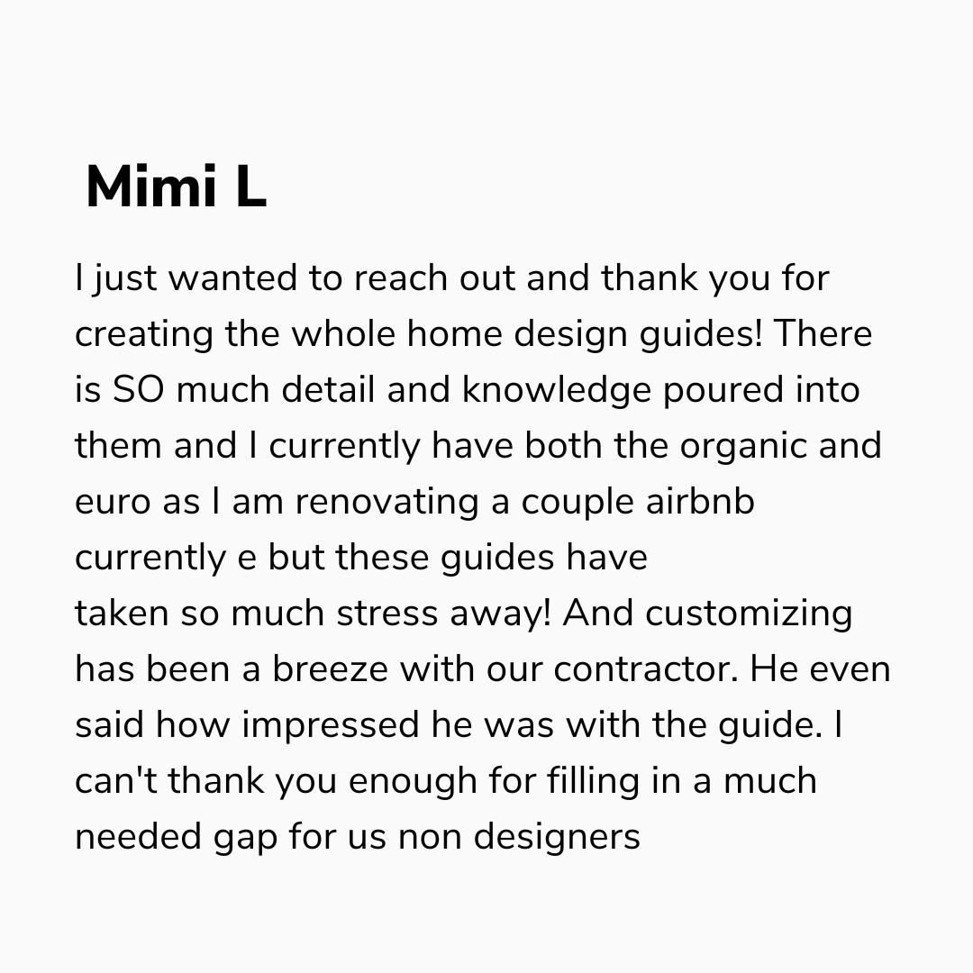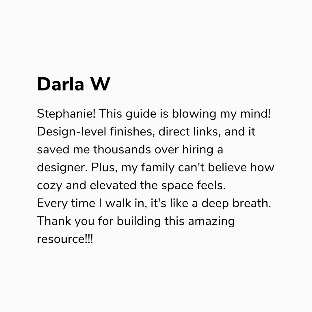 Each guide includes every finish, fixture, design principles, color palettes, and curated sourcing links to design a complete home that feels cohesive and high-end — without hiring a designer.